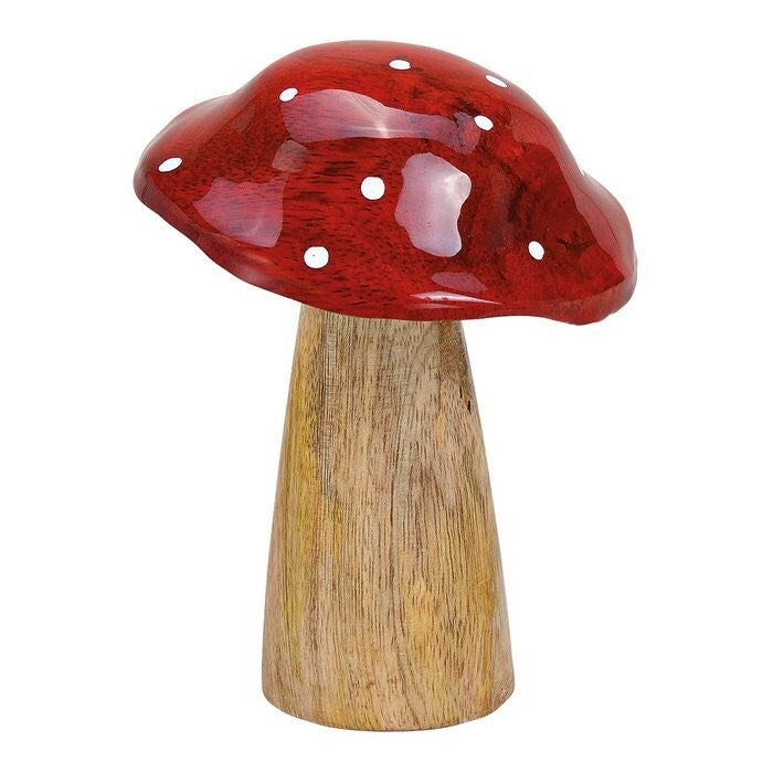 Mango hout paddestoel rood, bruin (B / H / D) 10x13x10cm