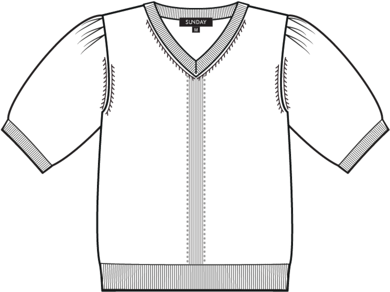 V-hals truitje met kort ballon mouwtje in Koraal rood.